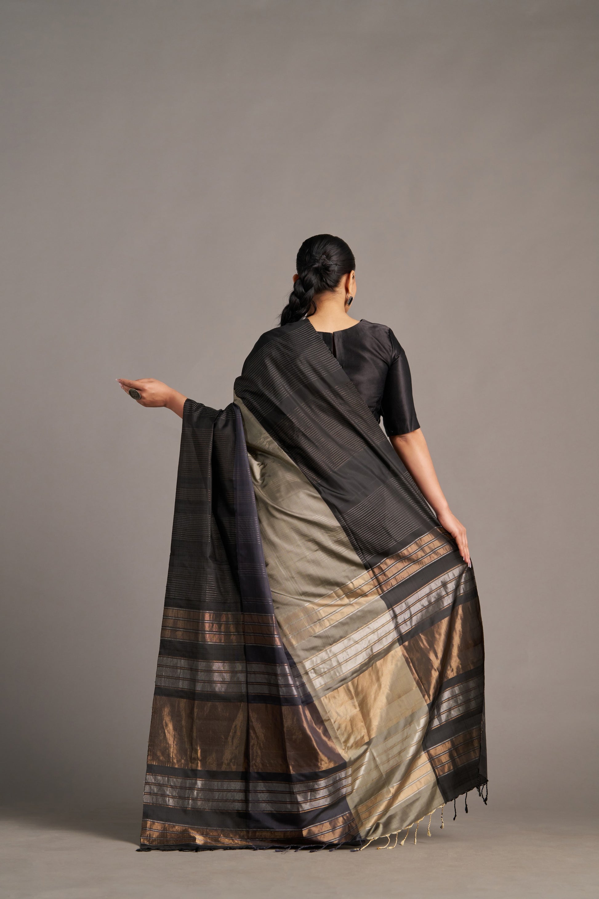Our sarees are handwoven and hand-dyed. Minor irregularities in weave or embroidery are part of the artisanal charm, not flaws.