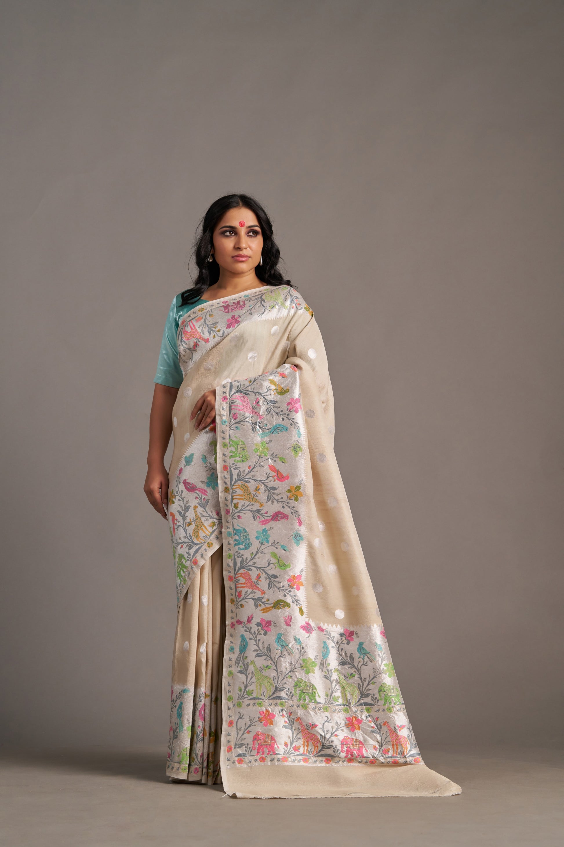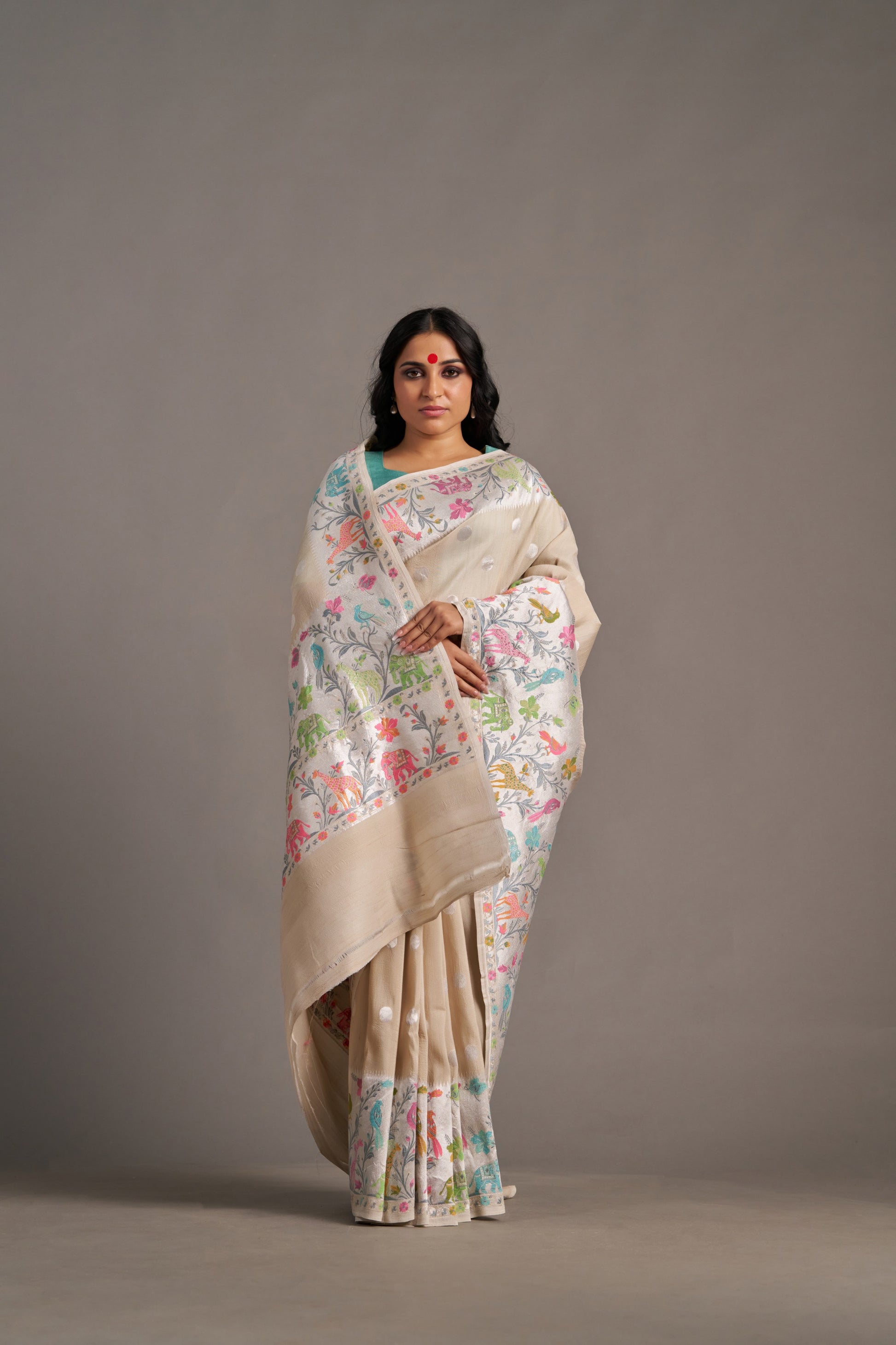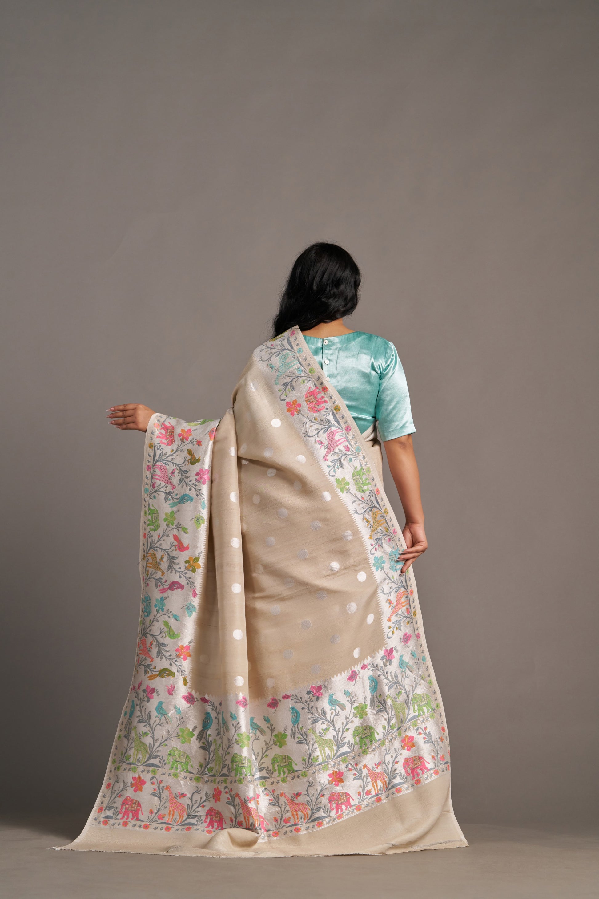 Our sarees are handwoven and hand-dyed. Minor irregularities in weave or embroidery are part of the artisanal charm, not flaws.