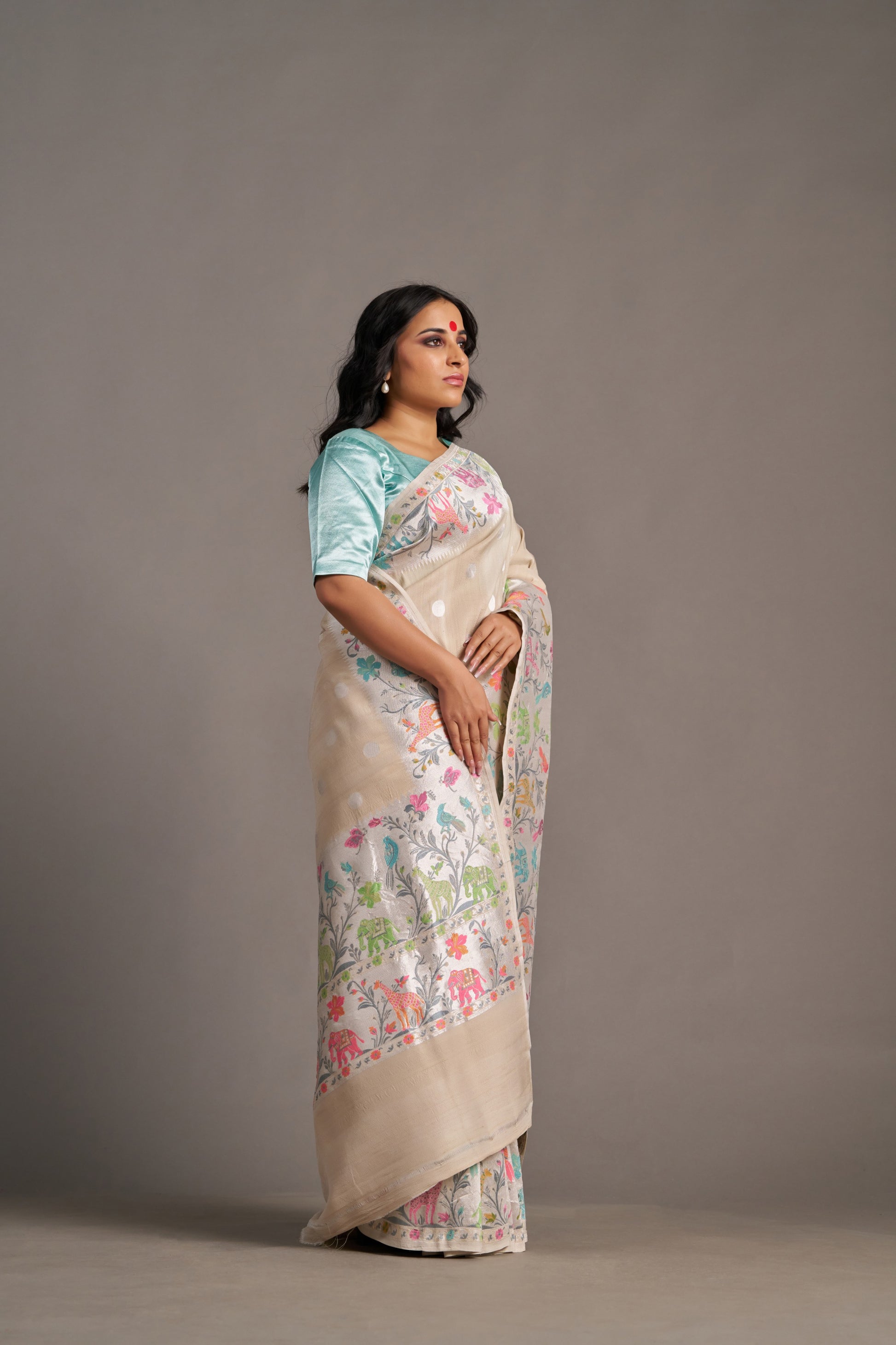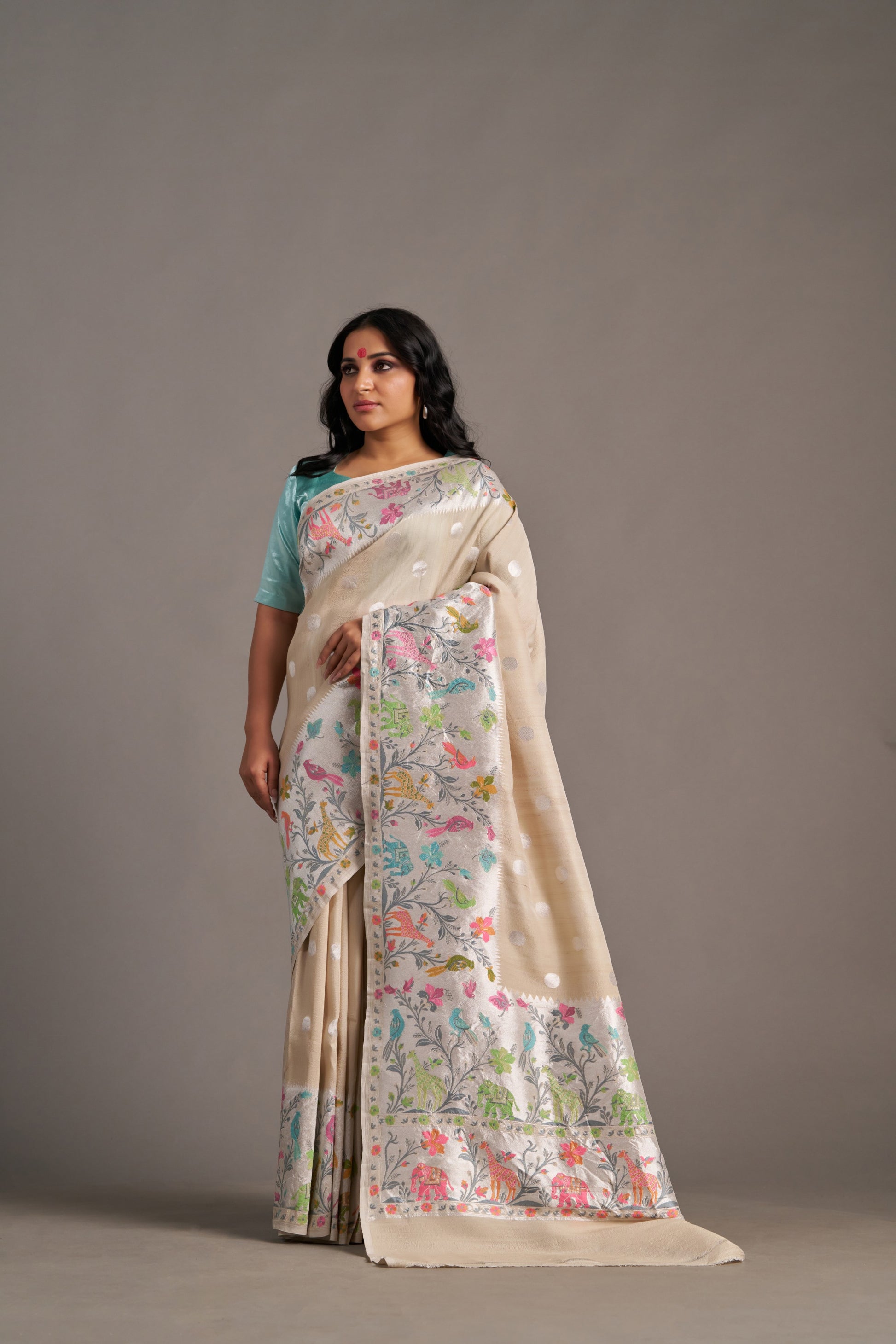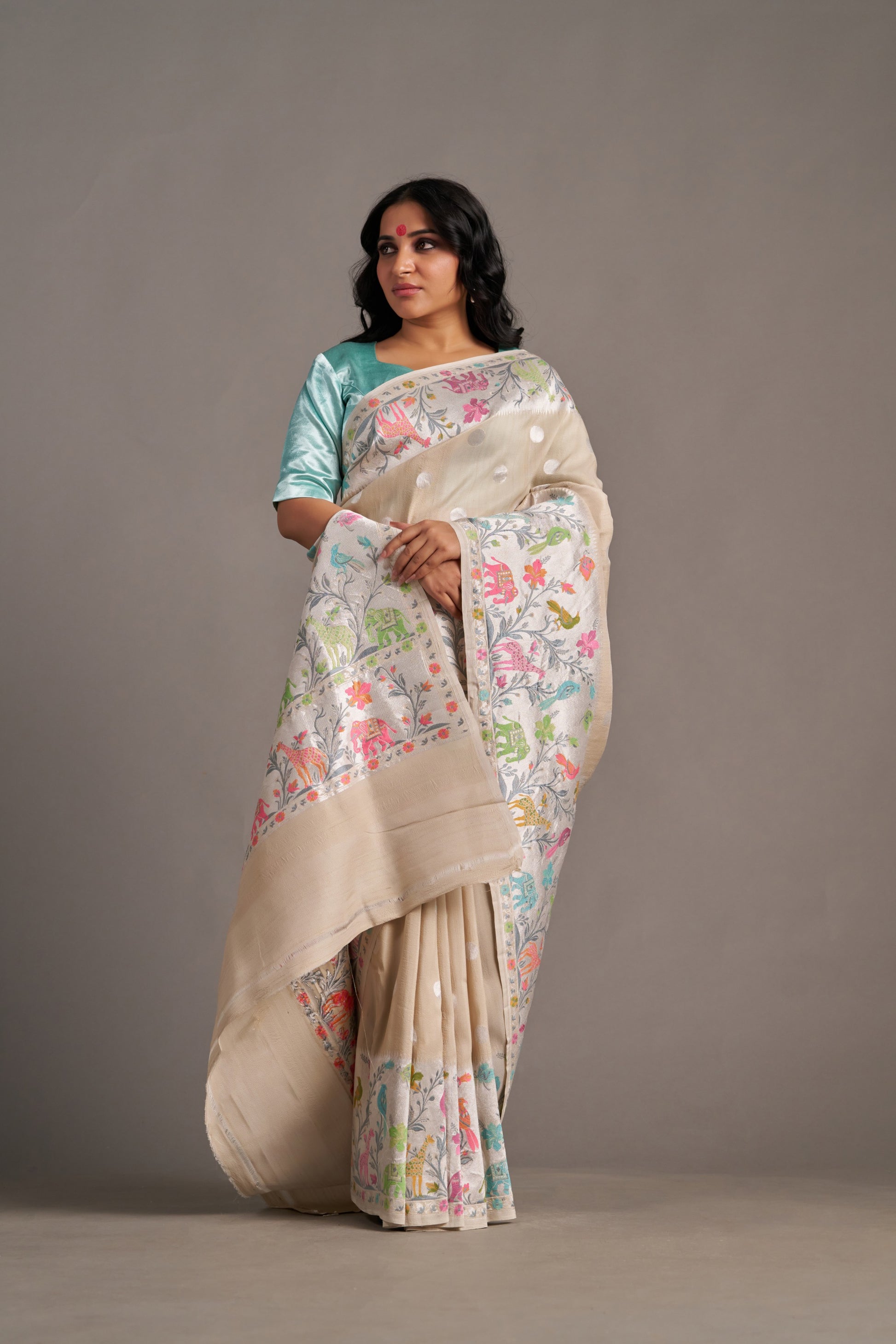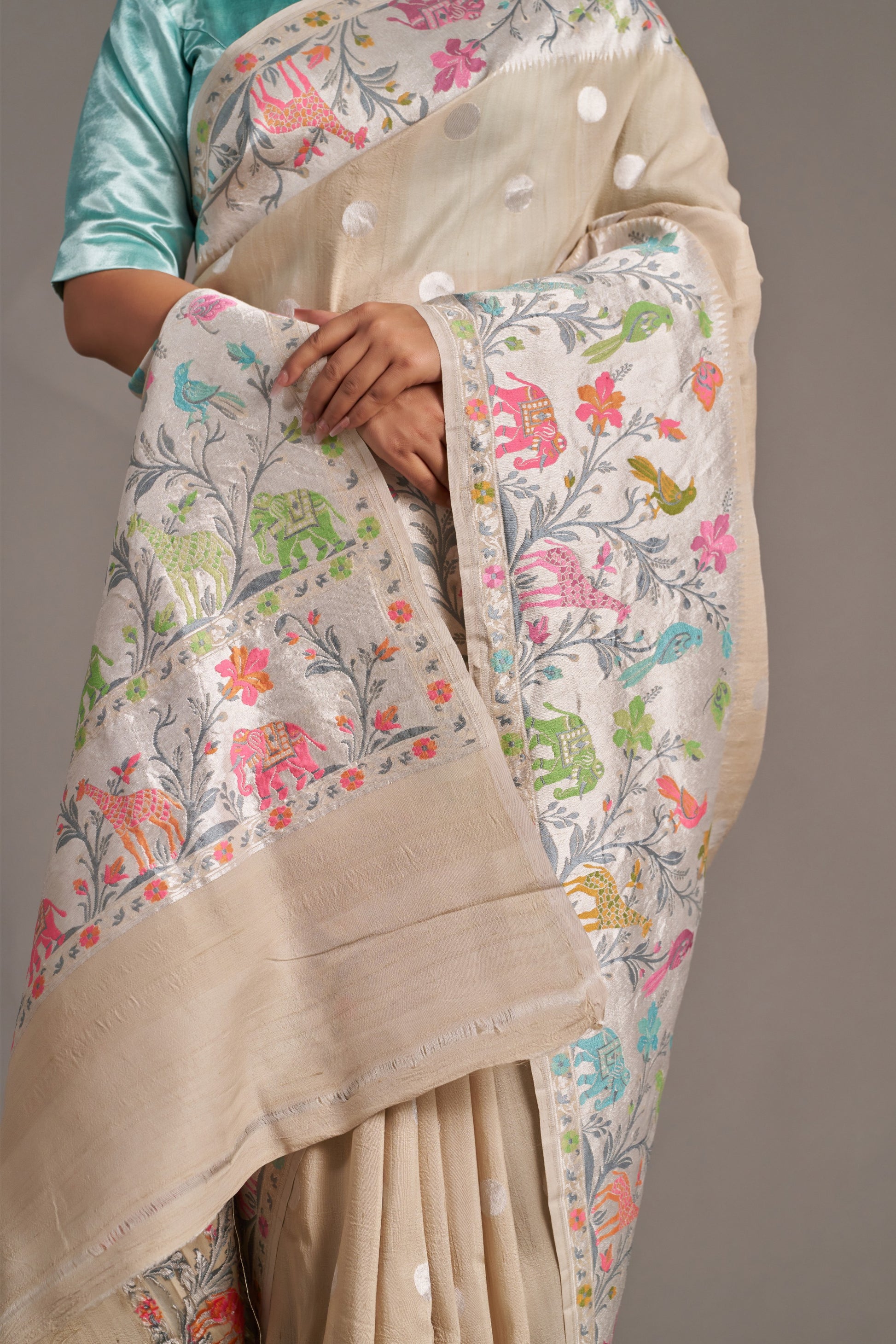 Our sarees are handwoven and hand-dyed. Minor irregularities in weave or embroidery are part of the artisanal charm, not flaws.