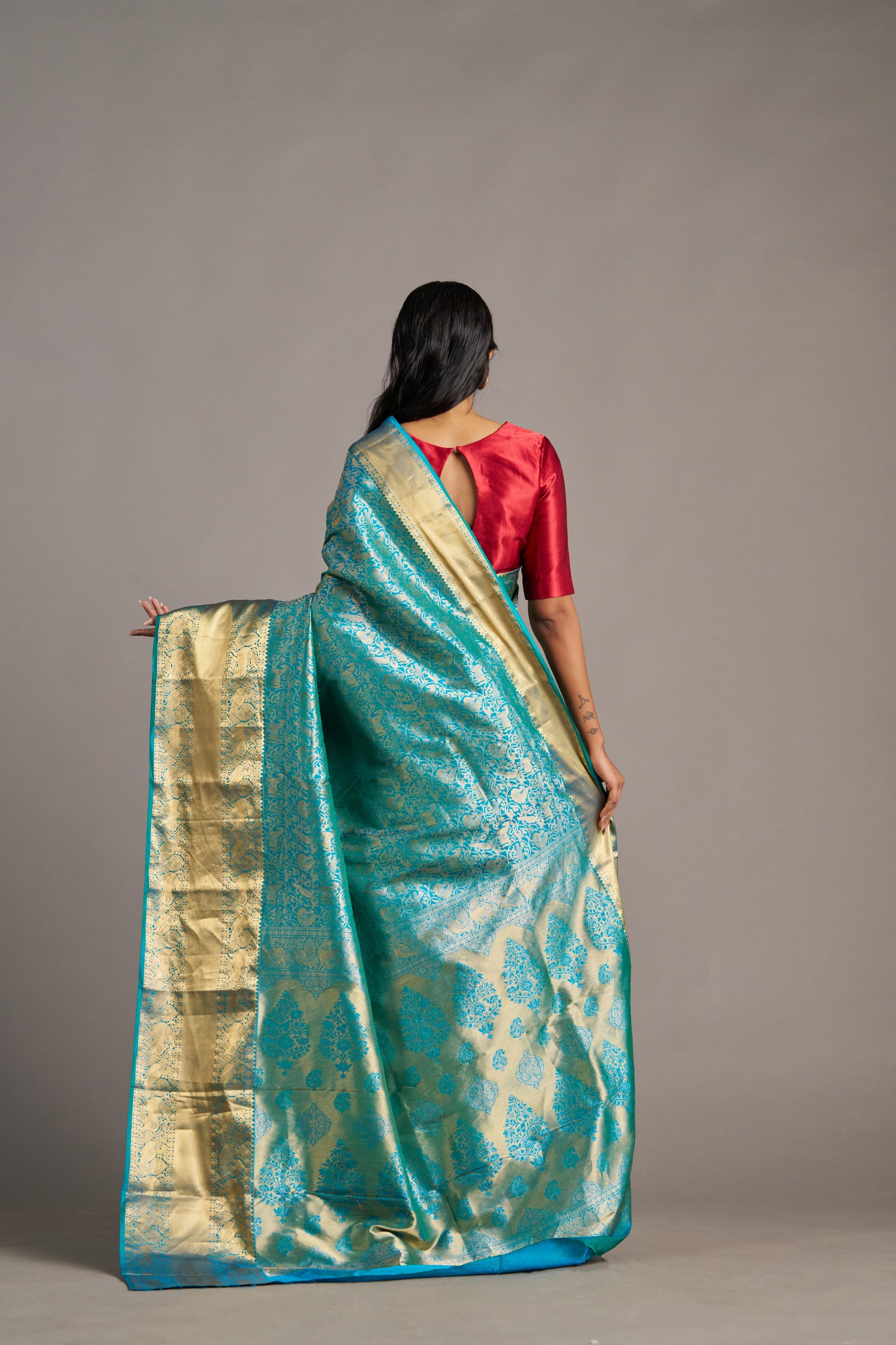 Our sarees are handwoven and hand-dyed. Minor irregularities in weave or embroidery are part of the artisanal charm, not flaws.